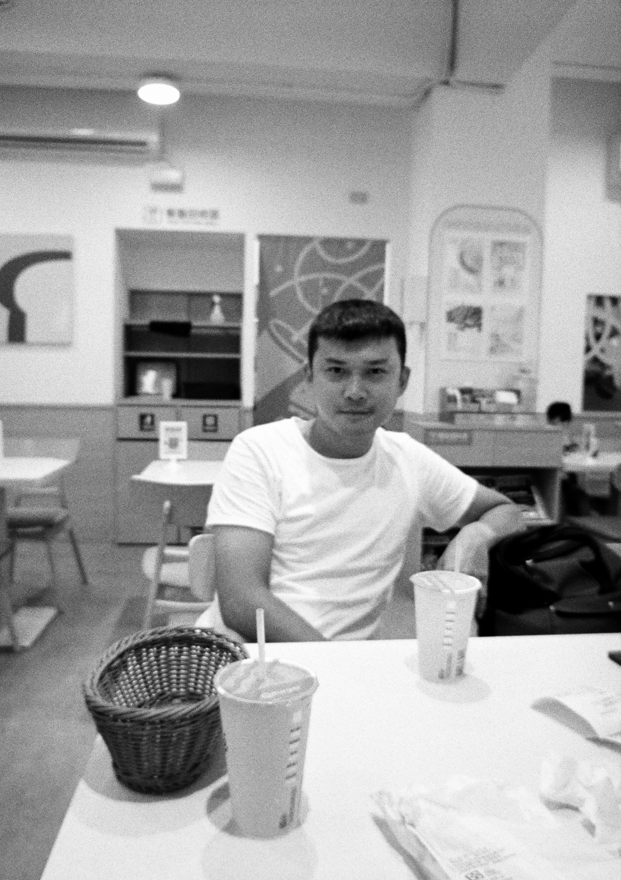 和太太難得兩個人單獨去吃早餐,這張是請太太幫我拍的,我應該要設定遠拍的,但我設定成近拍了。
