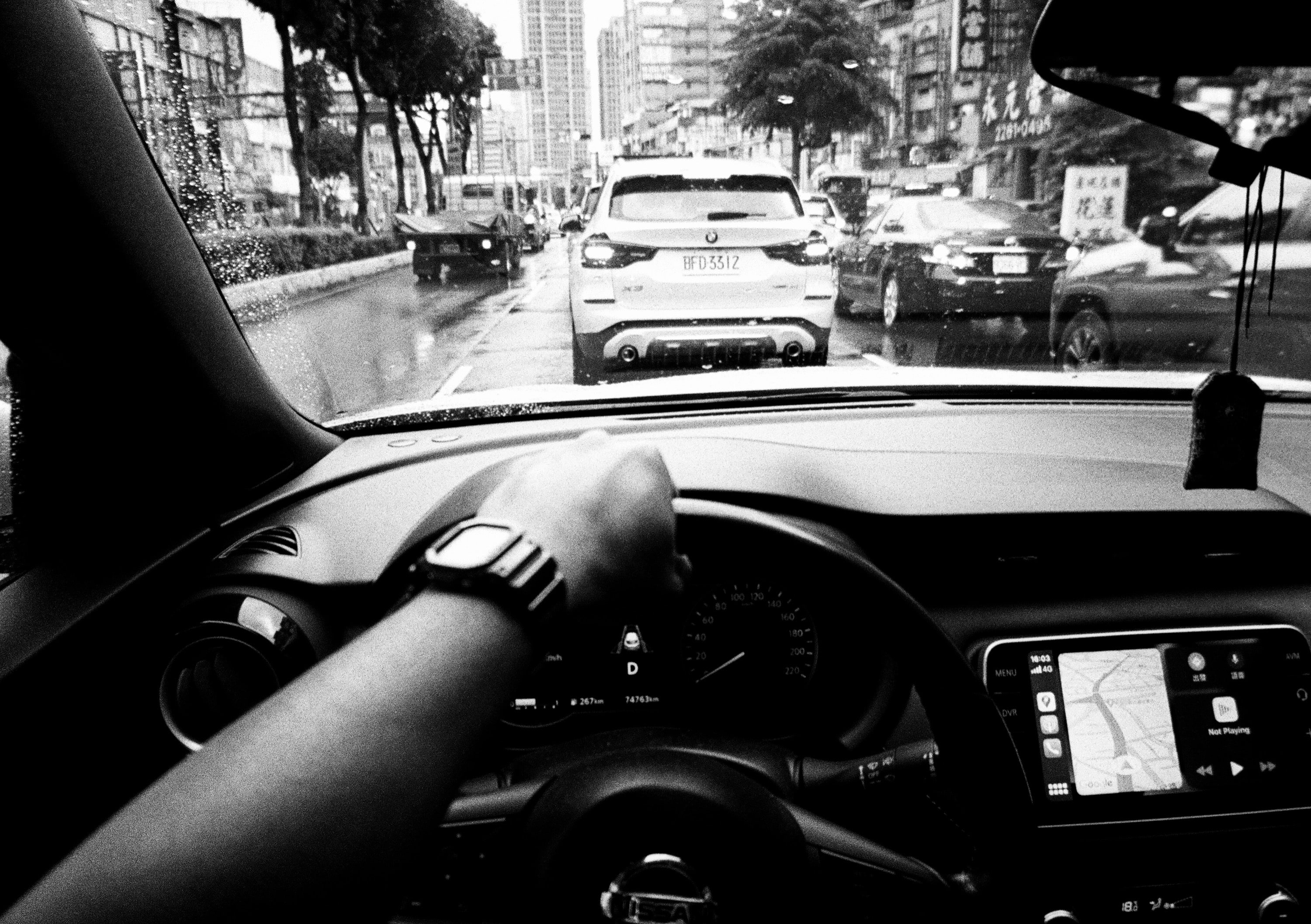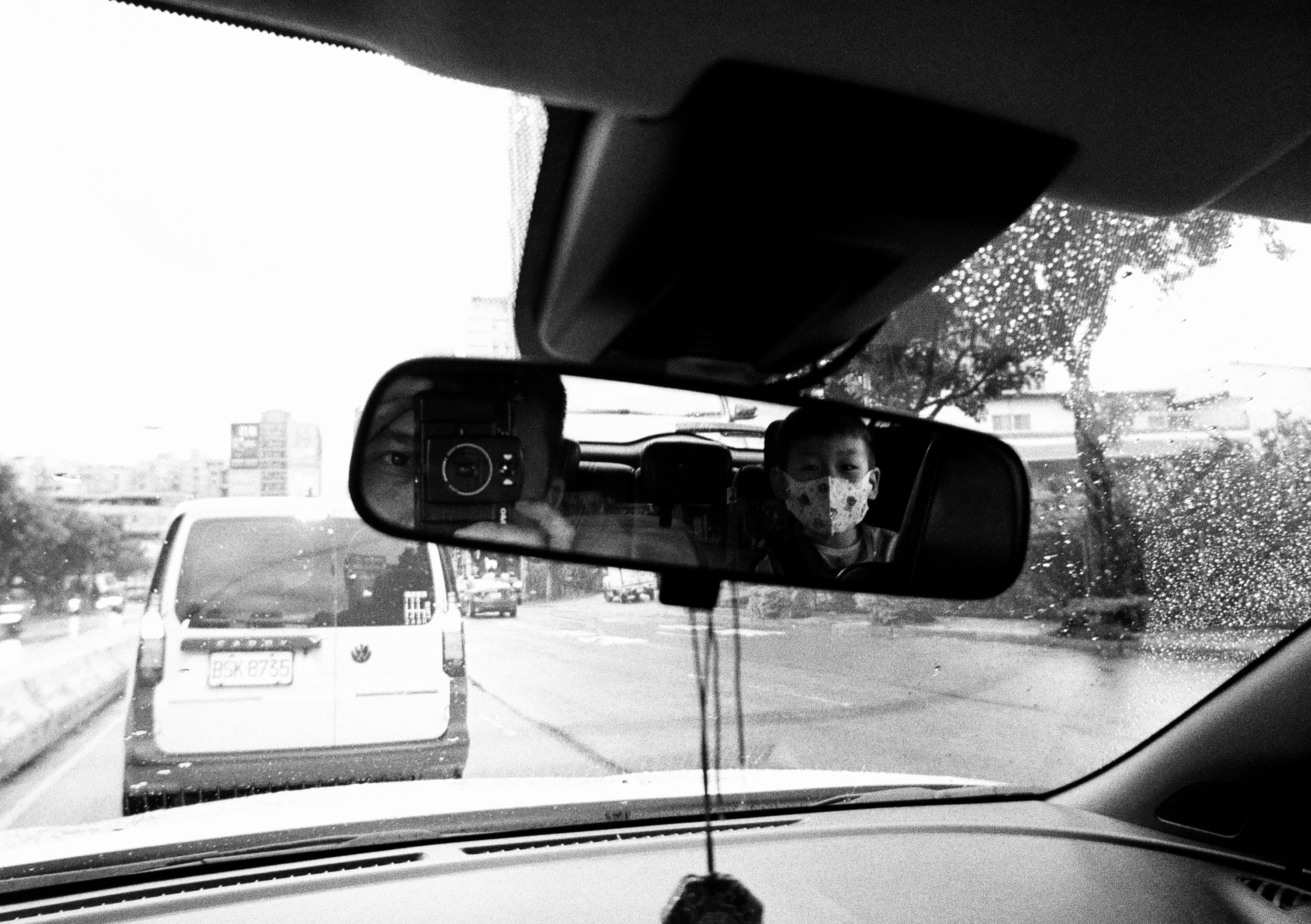 開車接小孩中。為了搞懂 Lomo LC-Wide 的估焦距離,我在這卷底片很多場景都是近拍一次,遠拍再一次,看哪個有合焦,而這張照片是遠拍,