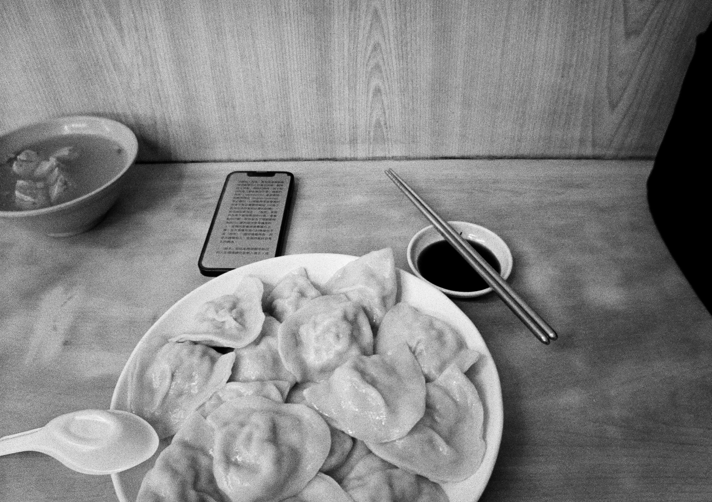 有個會邊吃水餃邊看電子書的男人。