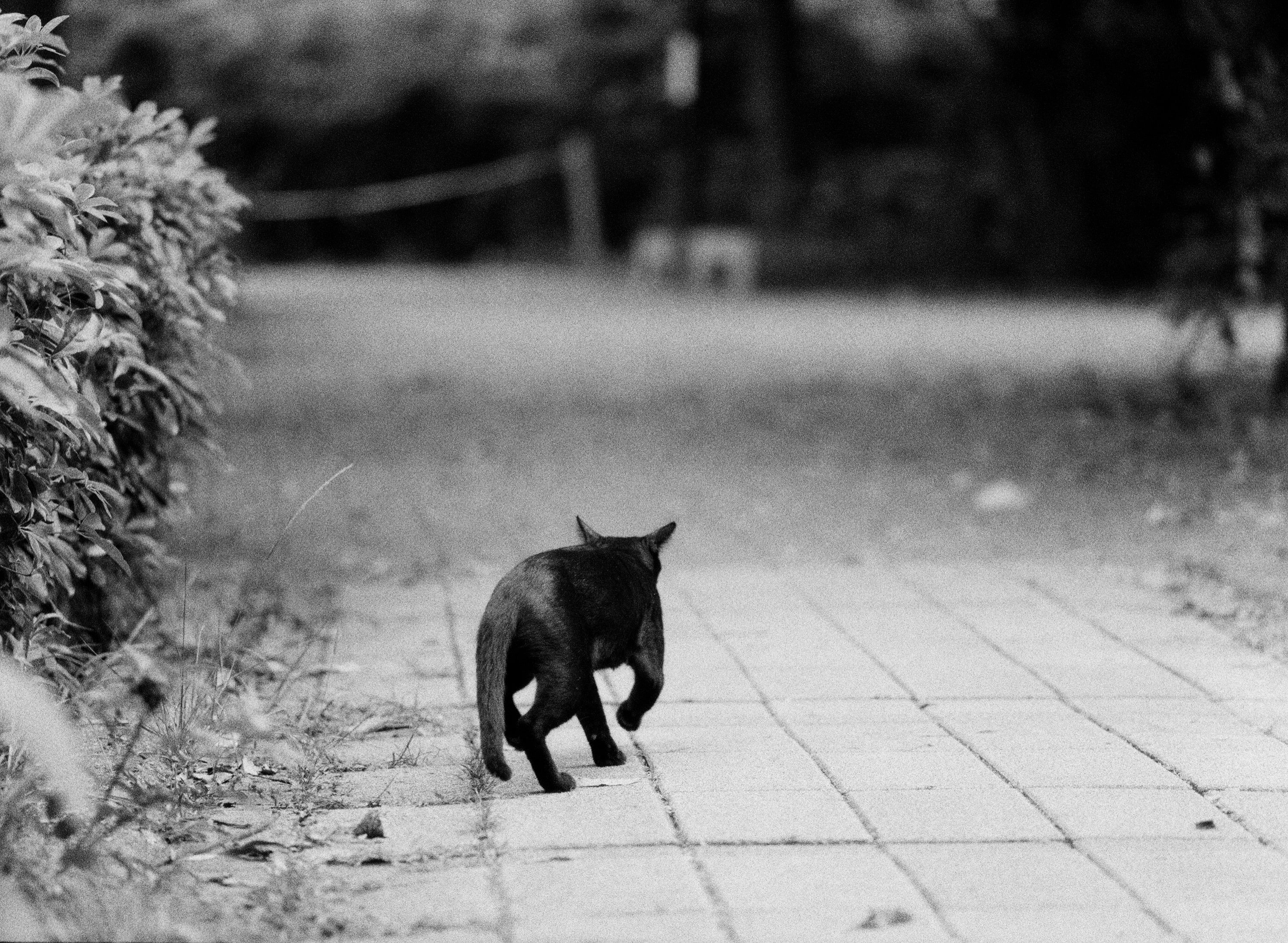以 645 片幅來說,200mm 的鏡頭不算遠,是一個會嚇跑貓咪的距離。