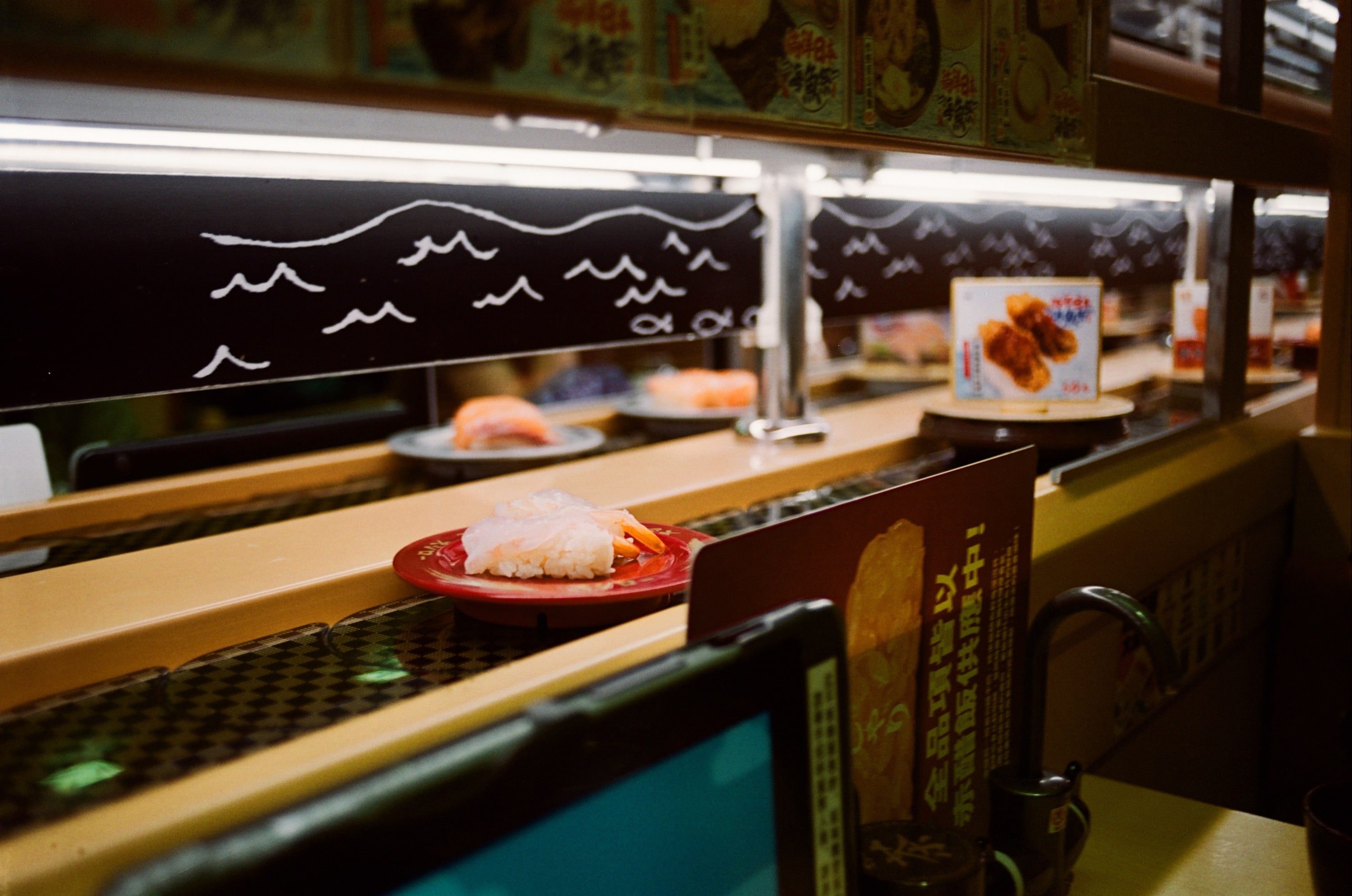 某一天的壽司郎。不過我個人覺得迴轉壽司還是要去日本吃,因為那才是真正的迴轉壽司,輸送帶上的壽司花樣多非常多!