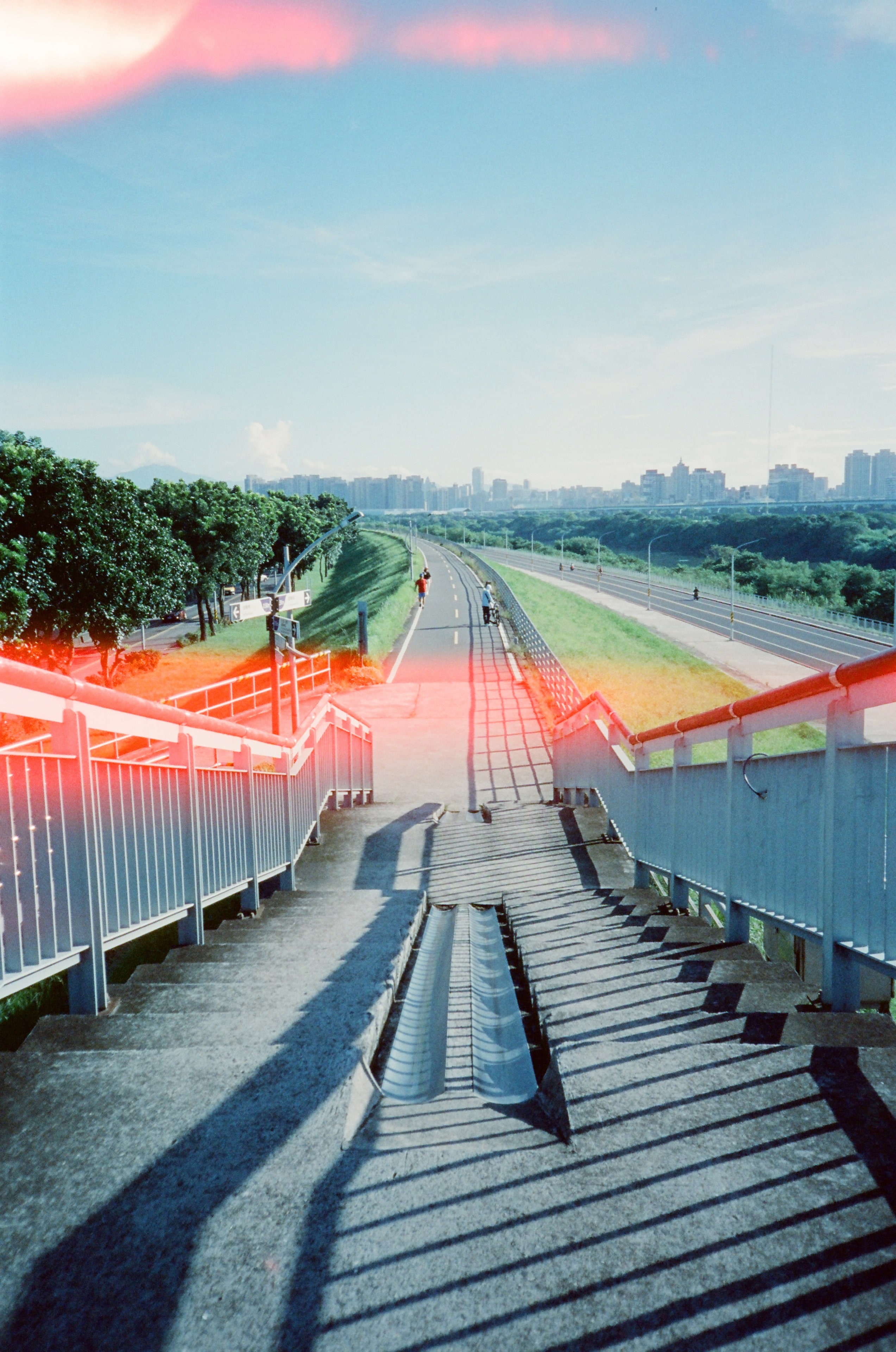 CyperPunk 800T 的分裝品質不推,漏光了。由於 Ricoh R1s 在裝入底片時,會先把底片捲出來,每拍一張再慢慢捲回去片殼裡,美其名是說這樣可以避免不小心開蓋造成已經拍過的底片報銷,但這種設計非常不適合數位沖掃時代,因為你拿到的照片順序會是全部相反的,對於有在認真管理照片進行歸檔的人來說,完全是一種困擾。因為 Ricoh R1s 的預捲片設計,所以你目前看到的片尾漏光,其實是一般相機的片頭漏光。