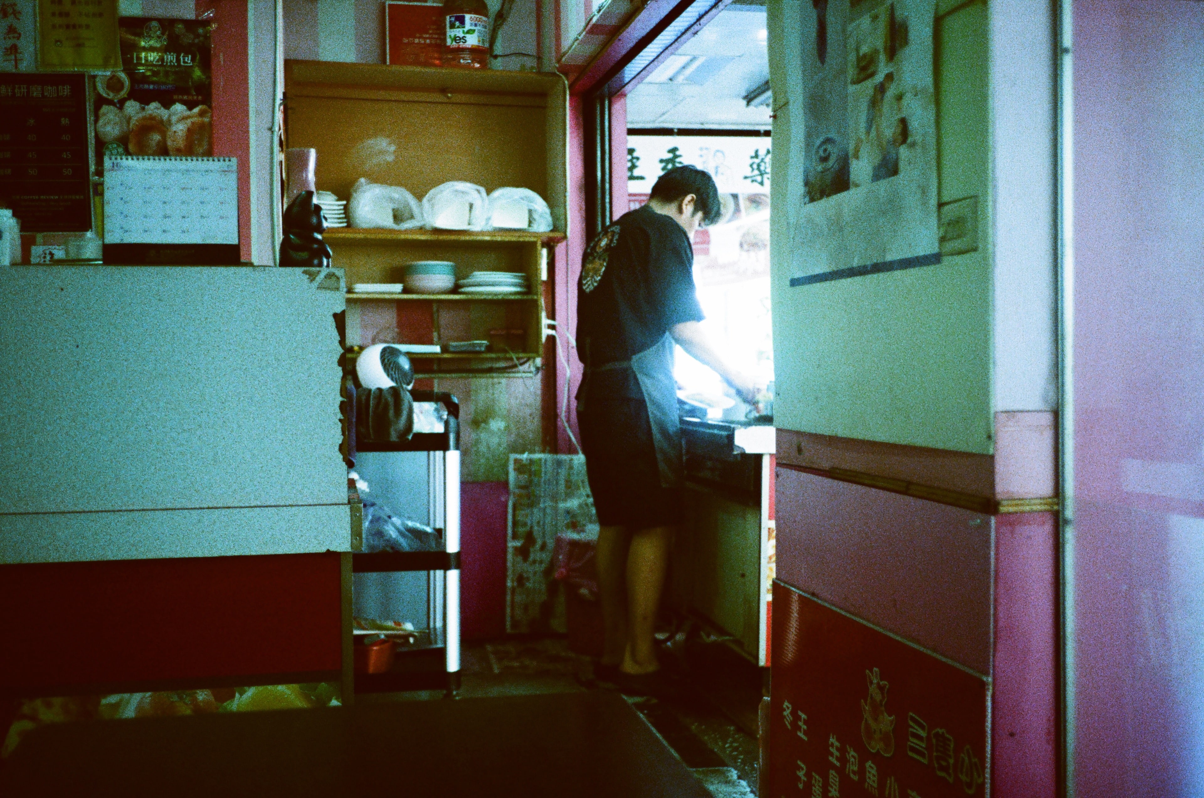 這張照片,我當時看了很久,因為我說不出來它給我的感覺,可能是粗糙又帶有光澤的地磚,又或者是清晰中帶有模糊的椅子,還有那不那麼像紅色的紅色。我認為,如果你用正片負沖去拍攝所有生活常見的場景,那麼結果一定會讓你驚喜連連。