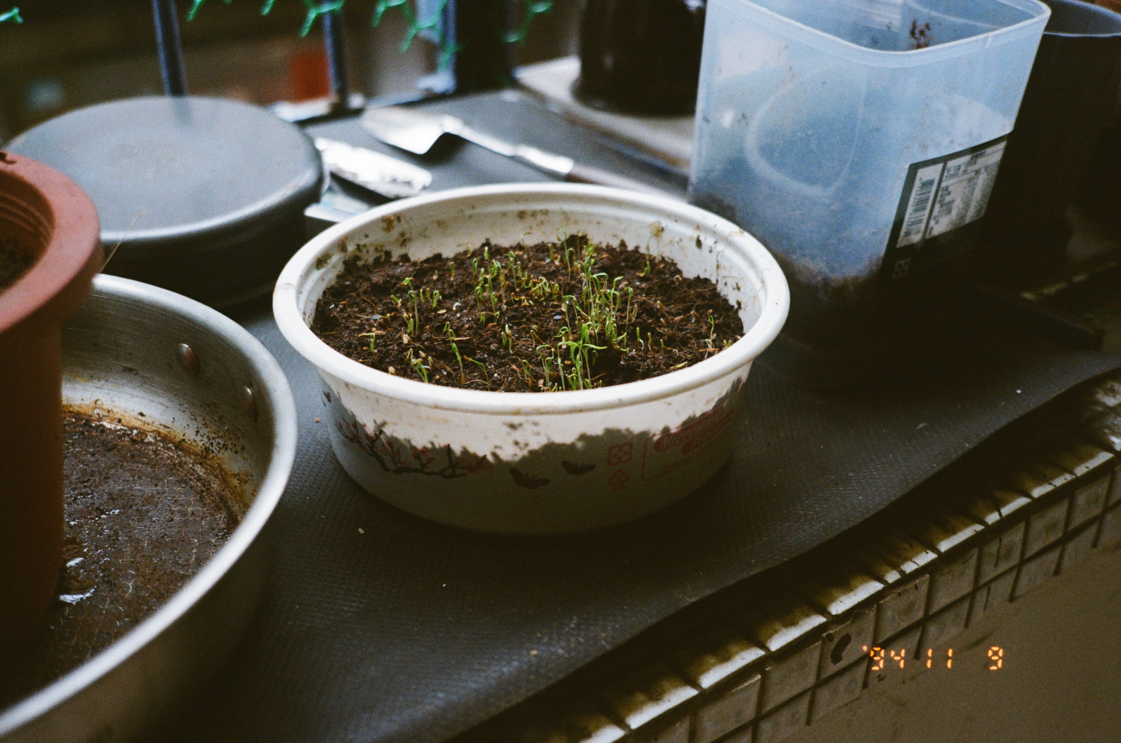 那陣子,家裡陽台種起了蘿蔔苗,不過一陣子就被不明生物吃光了。