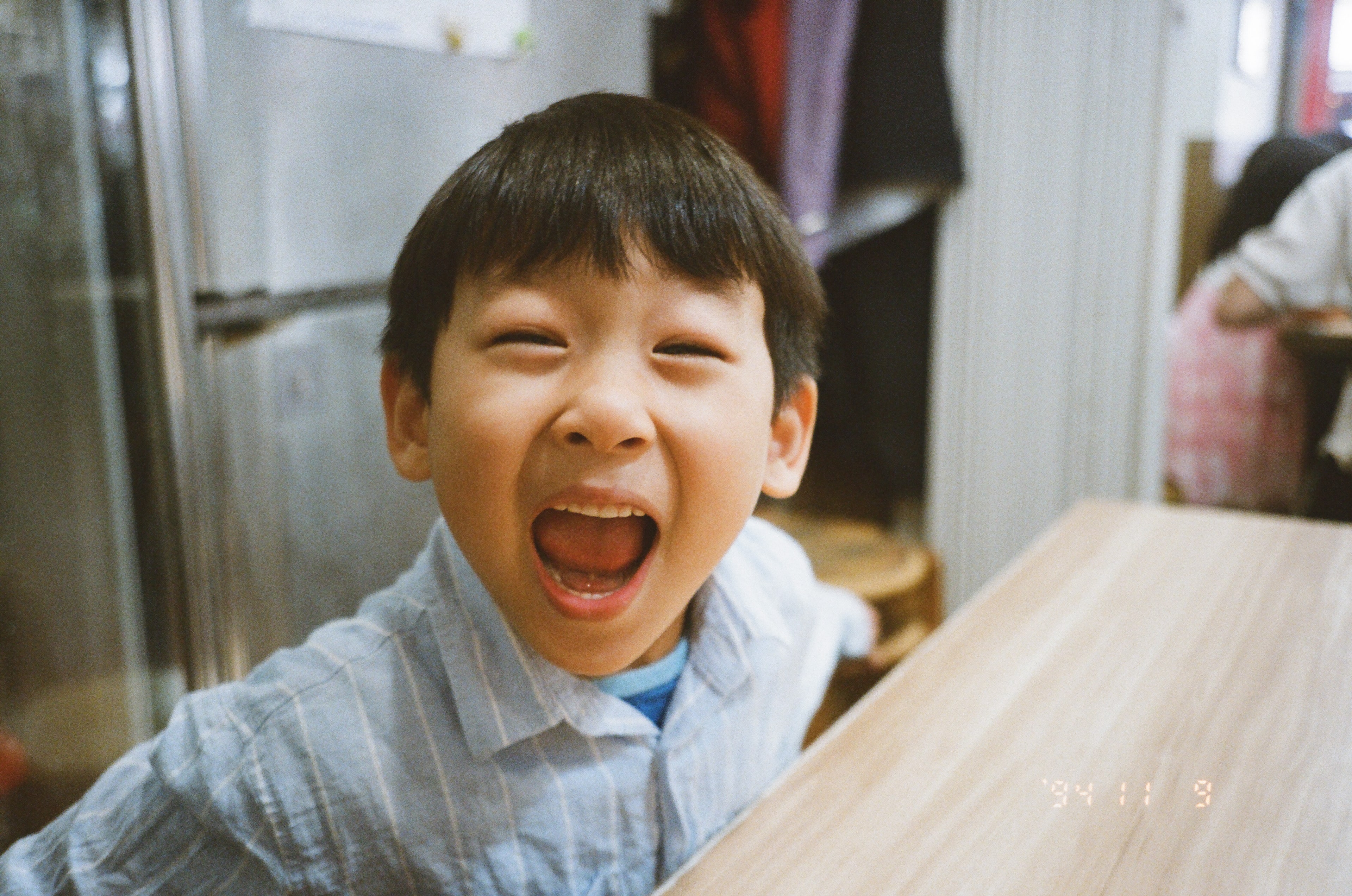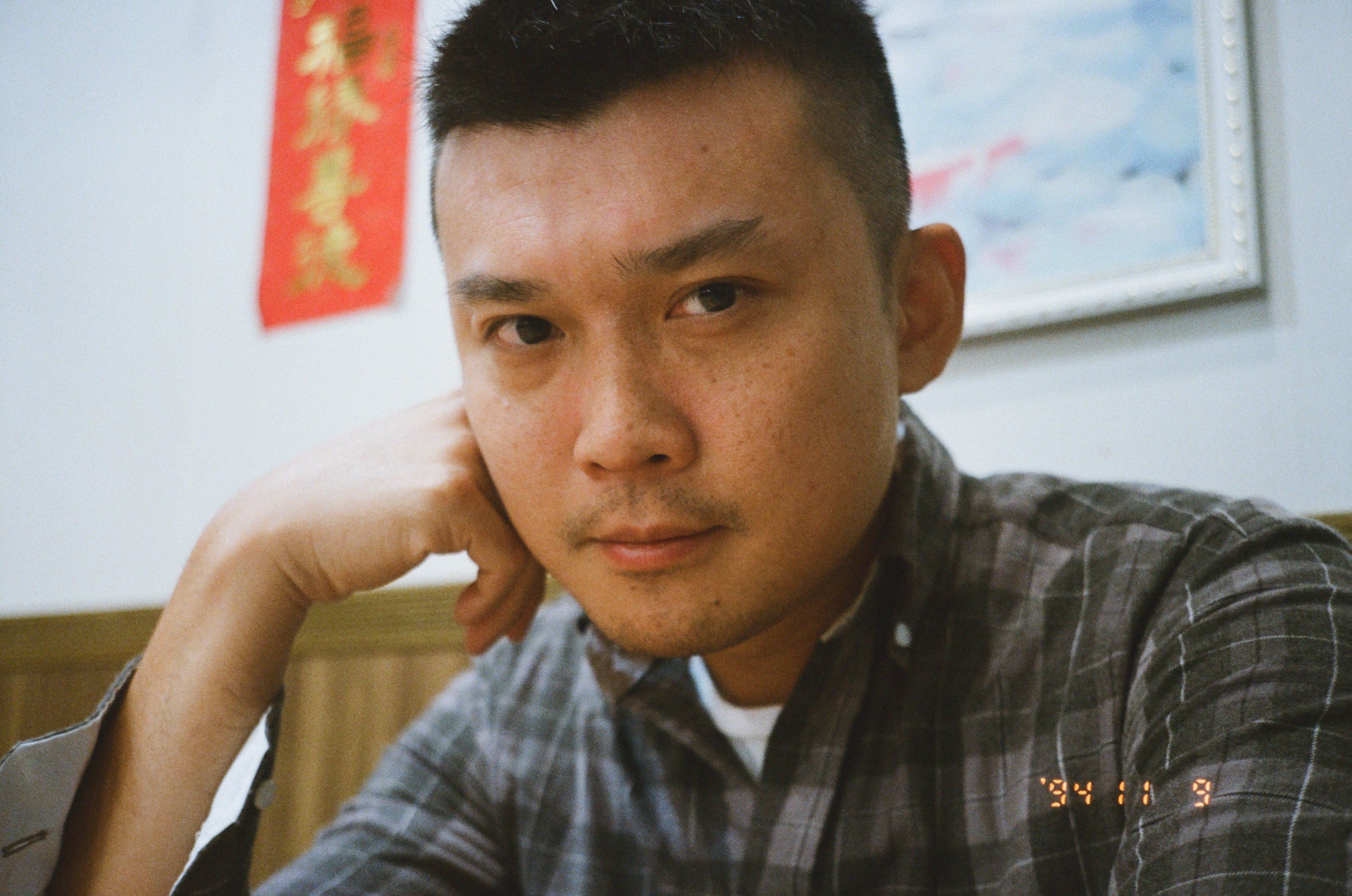 很久以前,曾經看過一本名為《FBI 教你讀心術》的書,書裡面曾經提過,當一個人的頭如果是有稍微歪斜的,通常代表對方的心情是放鬆的。這張是兒子拍的第二張照片。