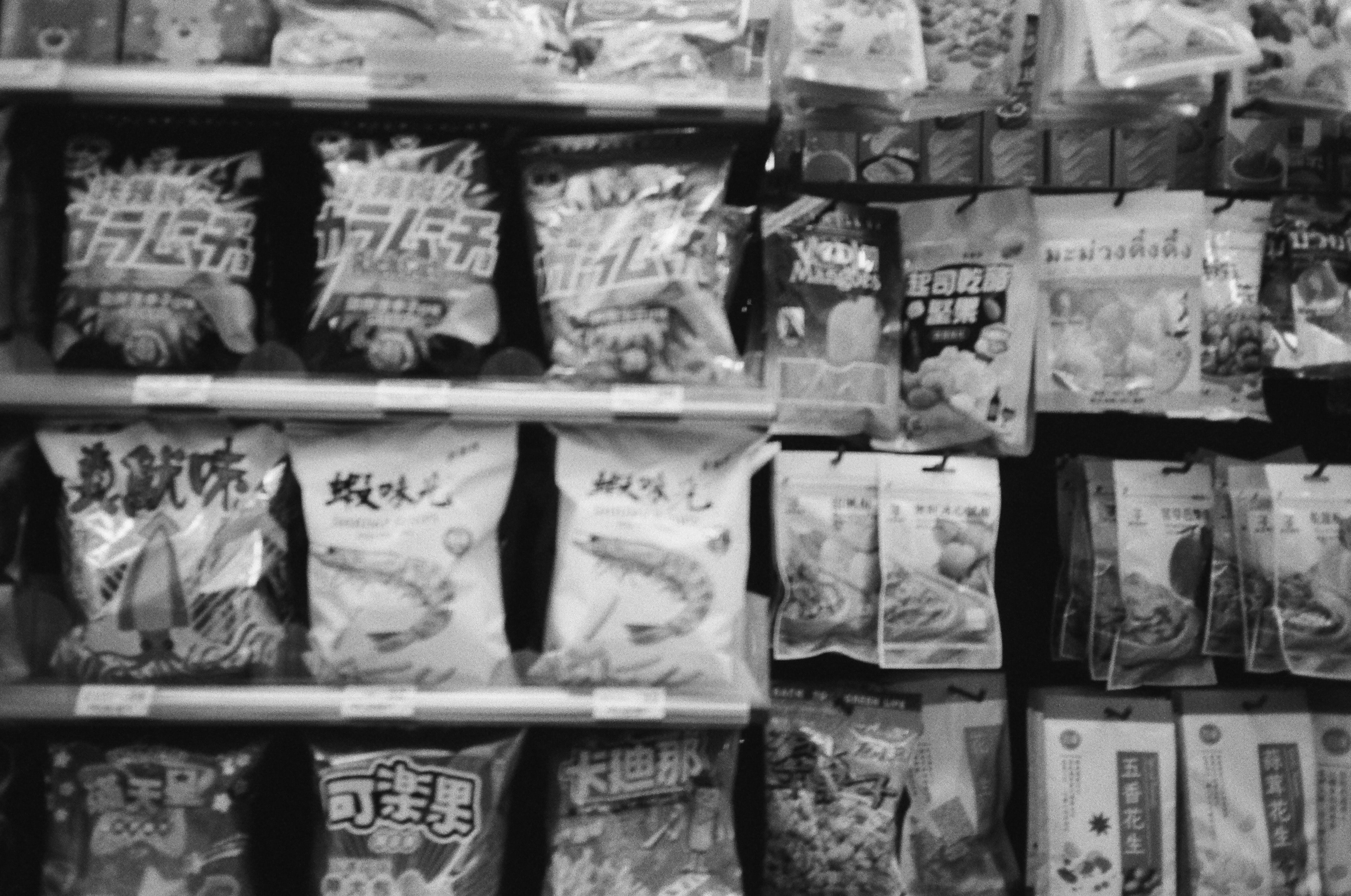 為了避免開車時想睡覺,我需要在車上擺一些零食,此時此刻,我正在便利商店採購中。這張看起來又是一張沒有留意燈號指示的失焦照片。