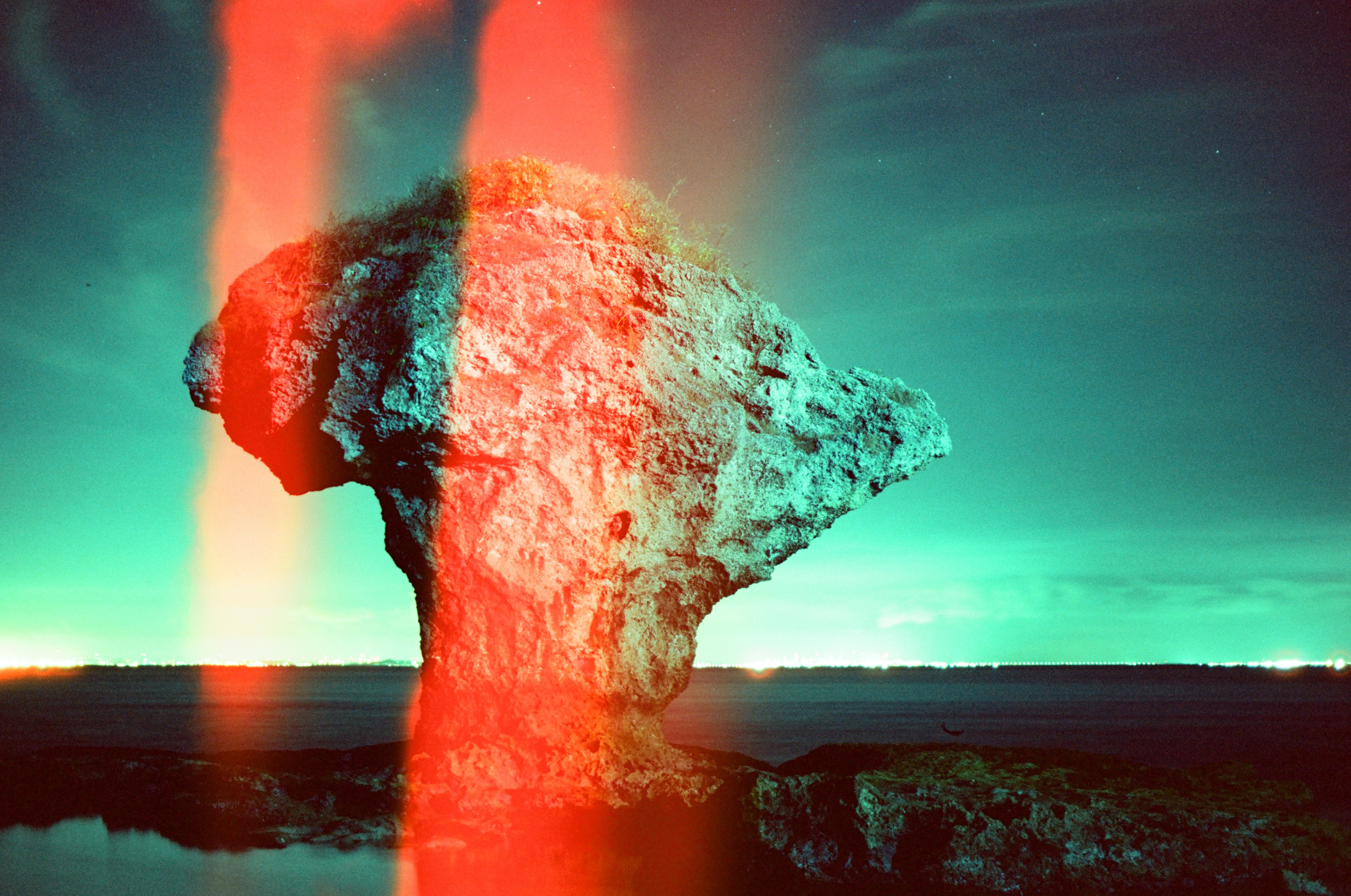 這顆珊瑚礁岩是小琉球最著名的「花瓶岩」,距離市區最近的自然地形地標。網路上搜尋花瓶岩,可以看到海量的照片,也許是因為網路上其他花瓶岩的照片都太四平八穩了,看著看著總會令人遺忘,因此,我還是喜歡上一張有漏光的版本。