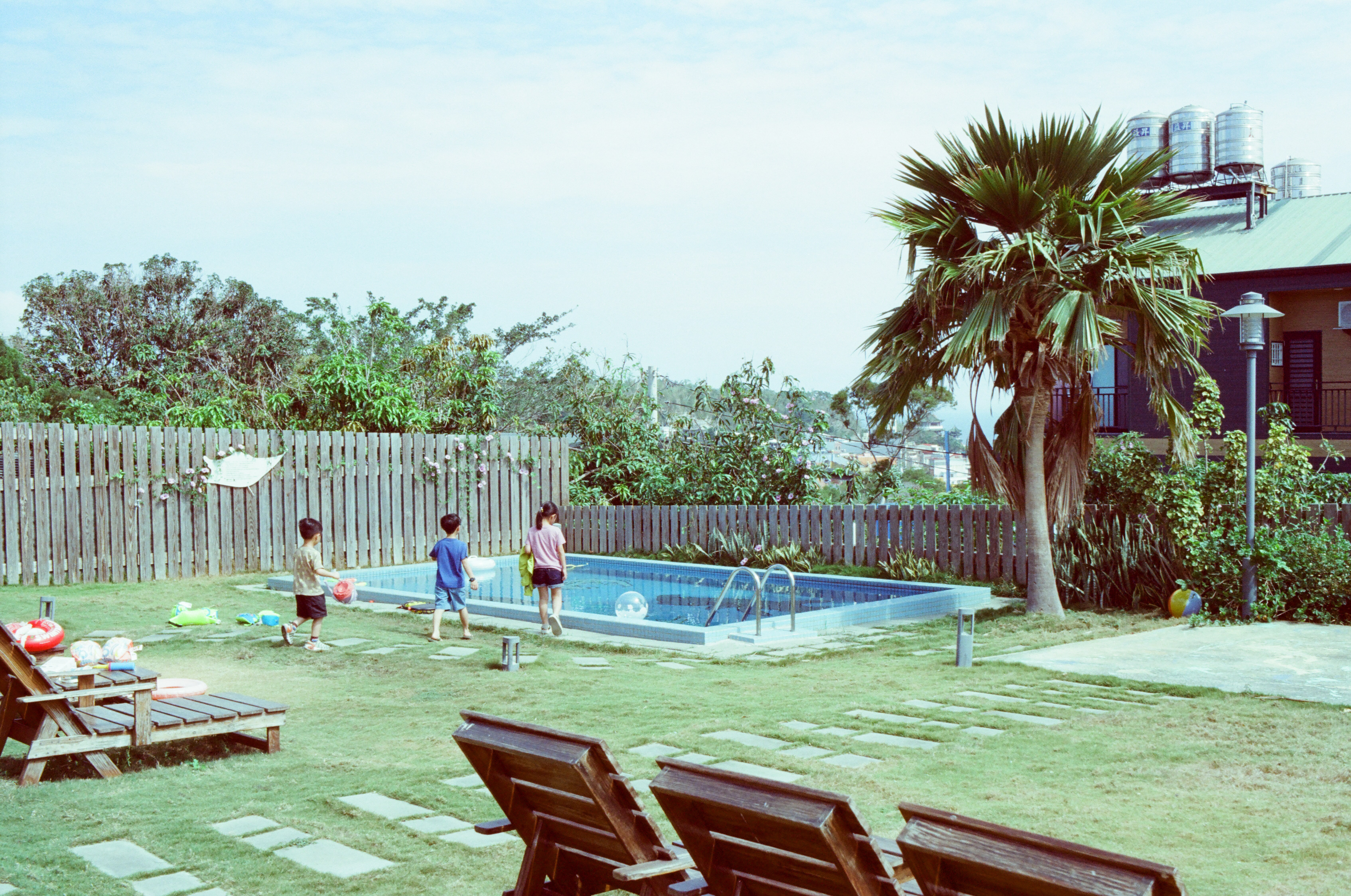 我們民宿的小游泳池。我真的很喜歡 Kodak Vision3 200T/5213 這個燈光片在日光下的樣子。