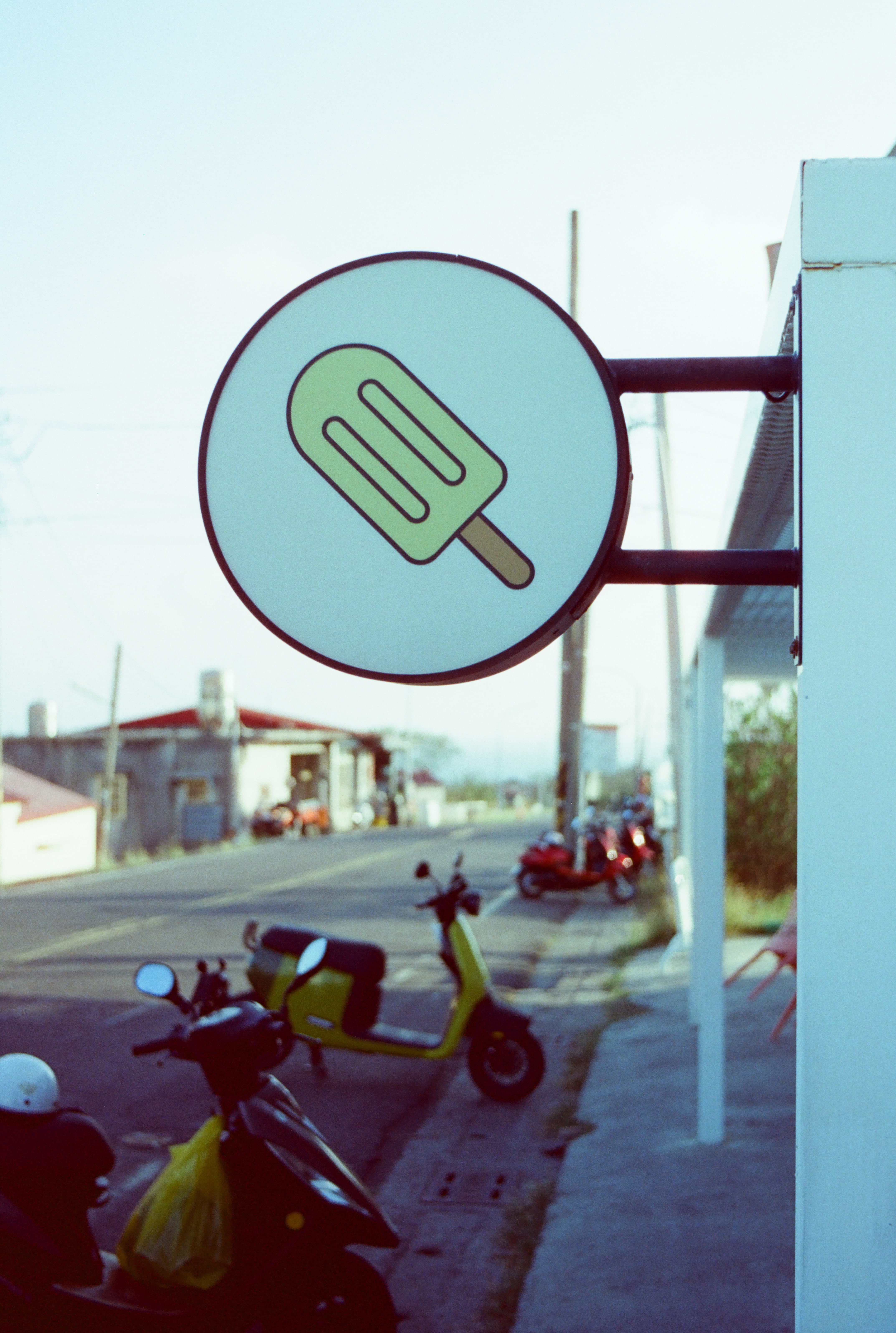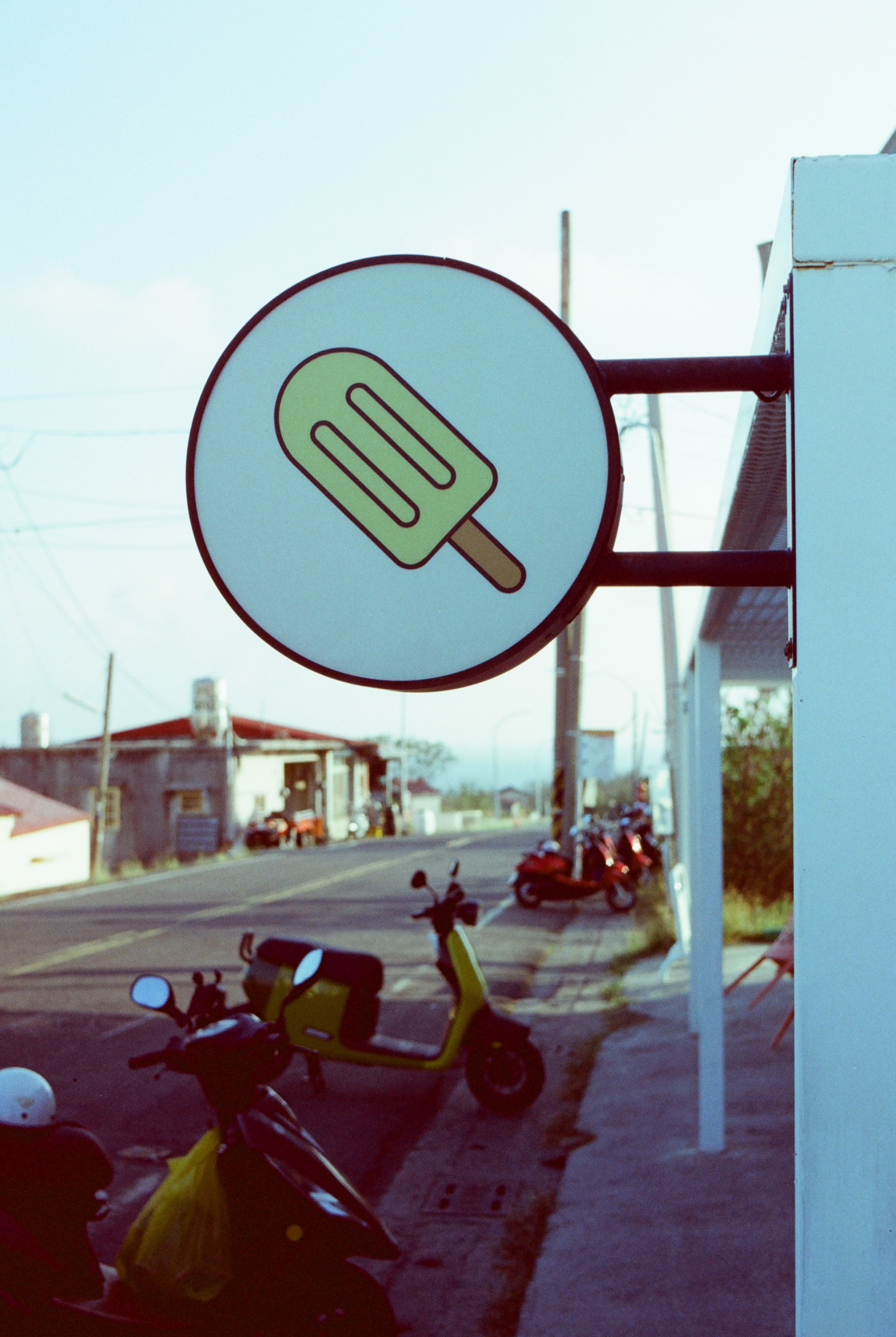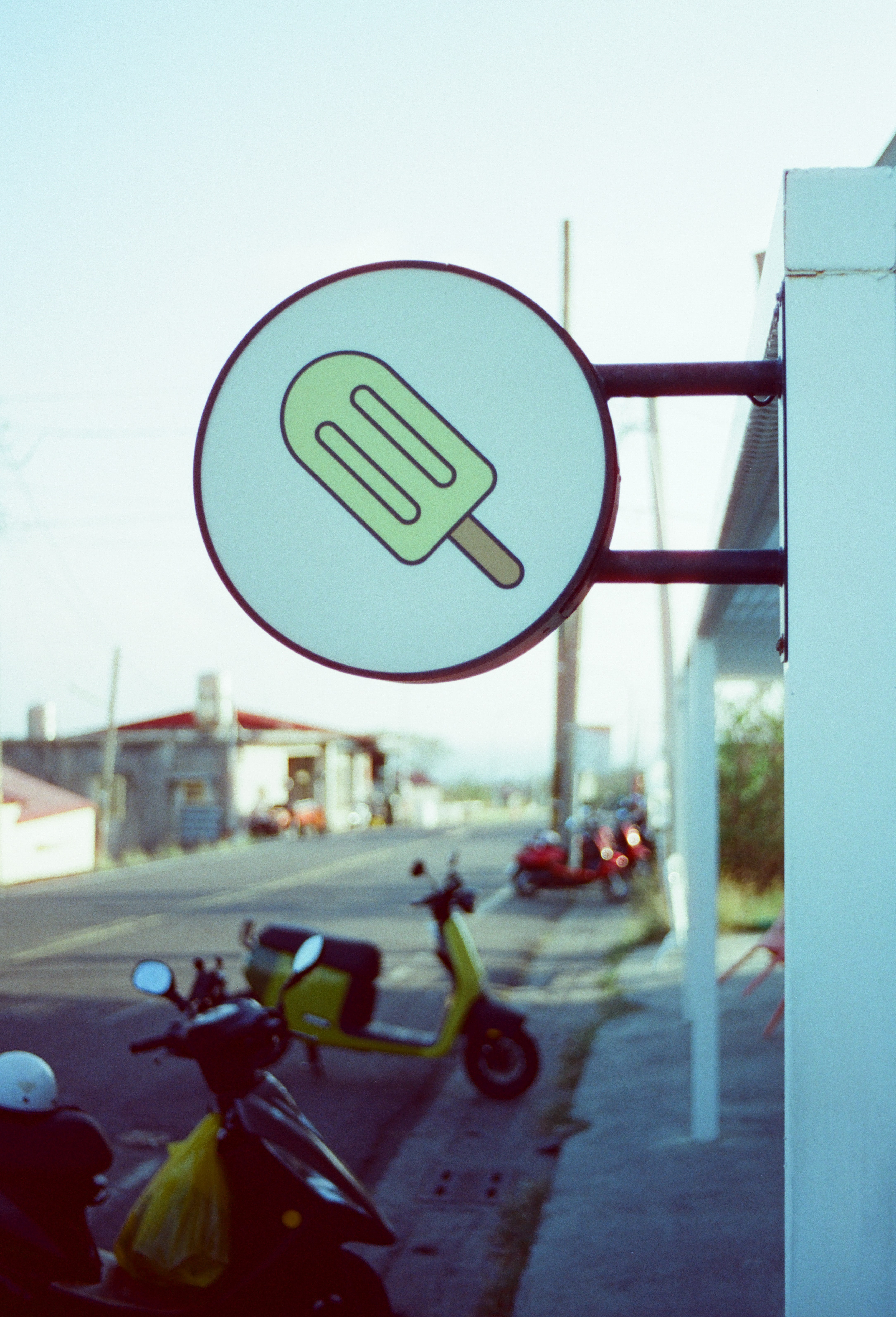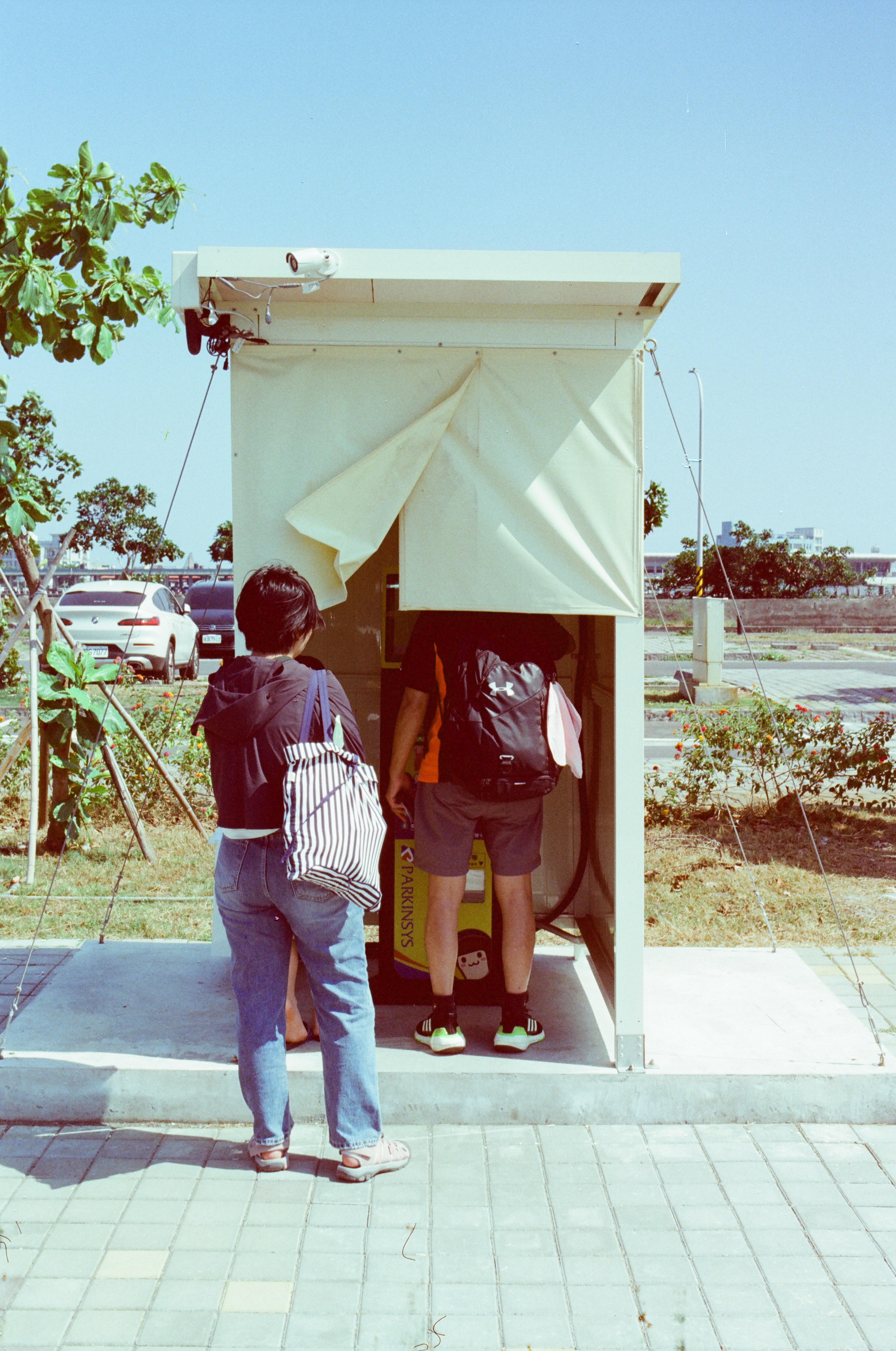 我手上這台 Asahi Pentax MX 買來就壞了,但嚴格來說也不是買來就壞,因為它是時好時壞,偶爾快門簾會卡住,反光鏡也下不來。有些底片相機賣家就是這樣,他會跟你說東西可以用,但不會跟你提及可靠度和穩定性。賣家沒錯,有錯的是我想要買相機的那個慾望。這張照片是我使用 Pentax MX 所拍攝的第一張照片,因為還在片頭的範圍,因此我預期它會有一點漏光,所以這一個畫面,我連續拍了兩張。這張是有漏光的版本,下一張是沒漏光的版本,老實說我比較喜歡這一張有漏光的版本。