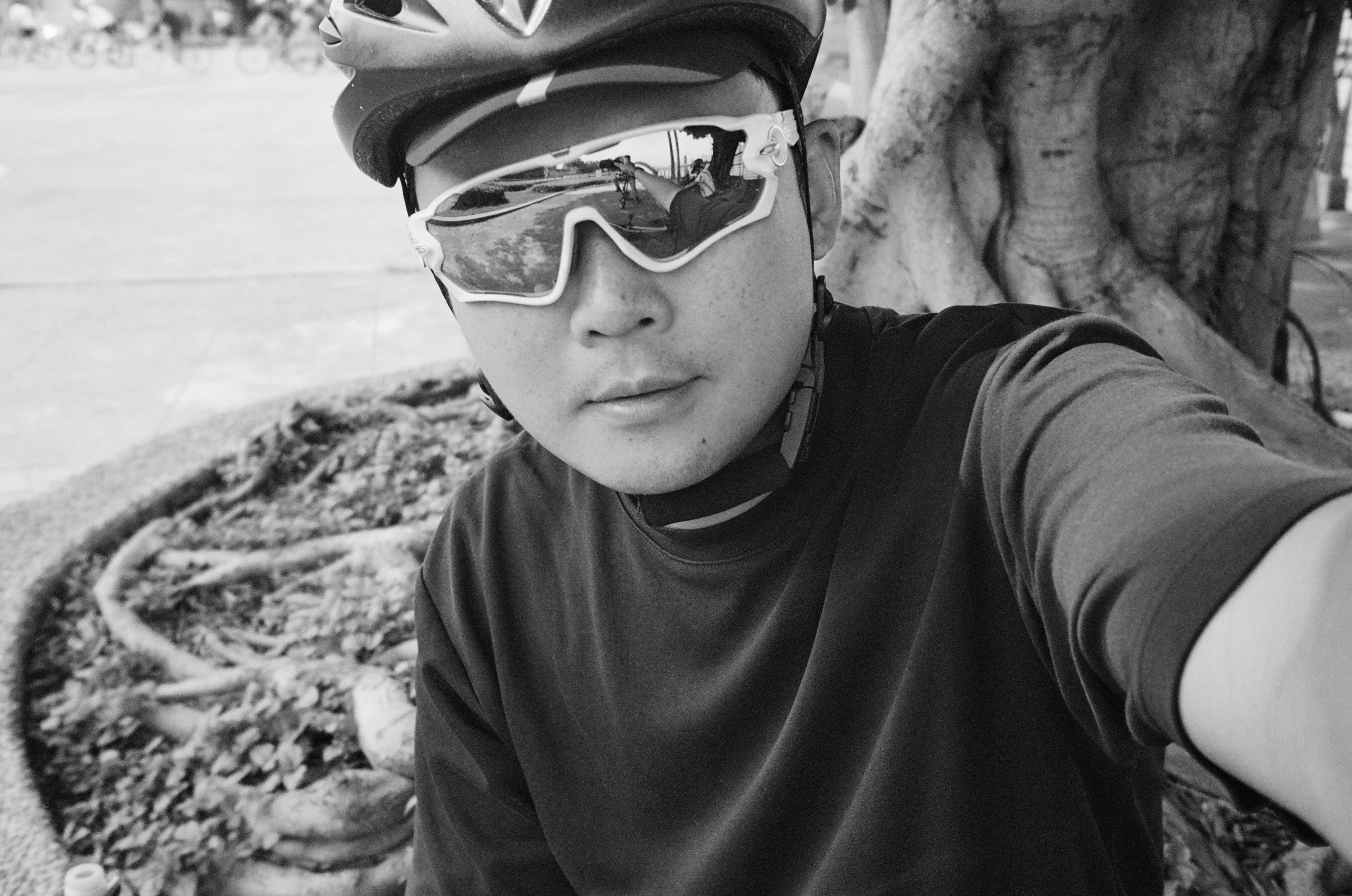 我在大太陽下,拿著 Olympus Mju II 對著自己自拍,但是 Mju II 竟然開啟閃光燈補光,這台相機也太愛補光了吧!