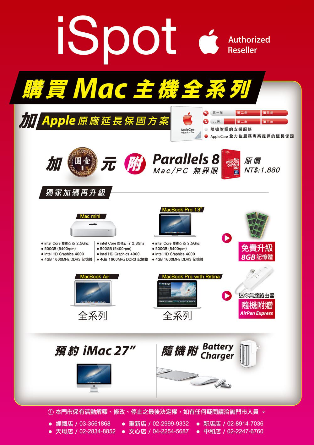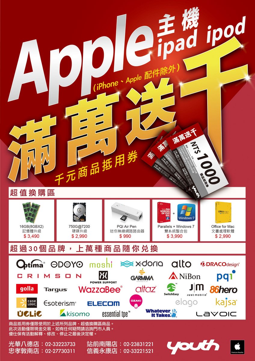 [優惠已截止] Apple 商品買萬送千、記憶體升級、Parallels + Win 7